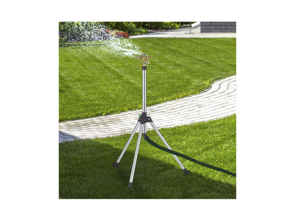 Mit dem FS-STAR Dreibein Impulsregner holst du dir die perfekte Gartenbewässerung nach Hause. Der verstellbare, rotierende Sprinkler sorgt dafür, dass deine Blumen, dein Rasen, Gemüsebeete und Kräutergärten gleichmässig bewässert werden. Dank des praktischen Stativs kannst du den Rasensprenger überall im Garten positionieren, ganz nach deinen Bedürfnissen. Das Teleskop-Stativ ist zwischen 55 und 88 cm höhenverstellbar, sodass du die Sprühreichweite ideal anpassen kannst. Ob für kleinere Blumenbeete oder grössere Rasenflächen – der FS-STAR Impulsregner macht das Bewässern im Garten kinderleicht und effektiv., , , Produktinformationen, , Verstellbarer und rotierender Sprinkler, Perfekte Gartenbewässerung, Stativ verstellbar zwischen 55 und 88 cm, Kann überall im Garten platziert werden, Bis zu 23 m Reichweite