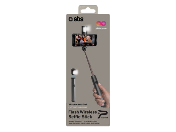 Der kabellose Selfie-Stick mit Blitzist das Accessoire, das Sie benötigen, um Bilder bei wenig Licht aufzunehmen.