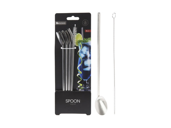 - 4 Trinkhalme mit Löffel & 1 Bürste
