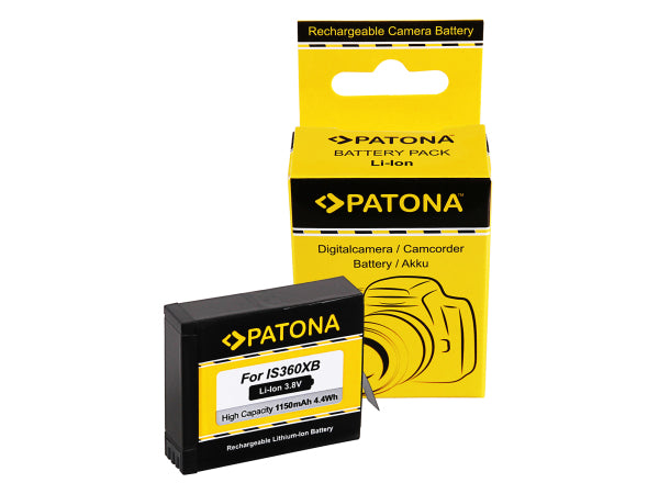 Technische Daten: Spannung: 3,8 Volt Kapazität: 1150mAh / 4,4Wh Zellentyp: Li-Ion Marke: PATONA Der Akku ist passend für folgende Modelle: Insta 360 One X Original-Bezeichnung der Akkus Dieser Akku ersetzt folgende Akkutypen: Insta 360