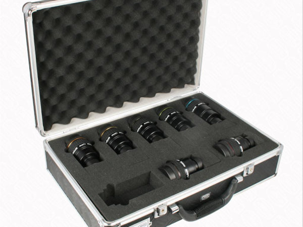 Hyperion / Morpheus Okularkoffer aus Aluminium mit Schaum-Einsatz, ohne Okulare. Ein edler Schutz für Ihr Zubehör - elegant, robust und abschliessbar. Der Hartschalenkoffer hat verstärkte Aluminiumkanten, damit bietet er die notwendige Steifigkeit und auch Langlebigkeit. Der Koffer bietet Platz für 8 Okulare (1,25" und auch 2"). Der widerstandfähige Schaumstoff kann gut auf die persönlichen Bedürfnisse zurechtgeschnitten werden. Aussenmasse: Länge 47,5cm / Breite 33,5cm / Höhe 13,5cm Innen: 8 Aussparungen mit 55mm Breite und unterschiedlicher Länge mit praktischen Griffmulden zum Herausnehmen der Okulare.