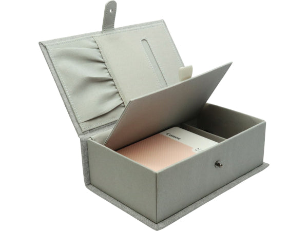 Mit diesem schicken Behälter im Buch-Design kann der SELPHY Square QX10 attraktiv aufbewahrt werden. Diese feste Schatulle schützt den SELPHY Square vor Staub, Schmutz und Stößen. Die schicke Schatulle hat innen ein abgetrenntes großes Fach für den SELPHY Square und bietet daneben Platz für Verbrauchsmaterial, Kabel und Foto-Schätze. Der sichere Verschluss außen an der Box sorgt dafür, dass alles, was sich darin befindet, sicher und geschützt verwahrt ist. Zudem lässt sich das Foto auf der Vorderseite jederzeit austauschen ? das macht die Aufbewahrungsbox ganz individuell.