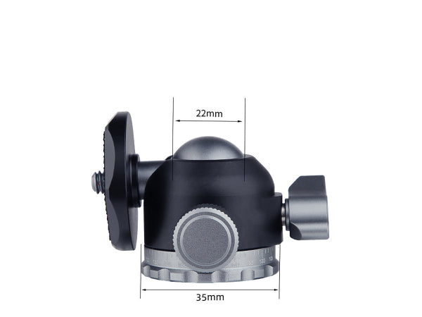 PATONA Kugelkopf für Kamerastative Eigenschaften: - Aluminiumlegierung, - Befestigung an Stativen, - Gewinde mit 1/4 Zoll, - Schwenkbarer Kugelkopf, - Rotierbare Bodenplatte, Unsere PATONA Kugelkopf wird aus einer leichten und robusten Aluminiumlegierung gefertigt. Der PATONA Kugelkopf kann an Stativen befestigt werden und durch das schwenkbare Kugelgelenk lassen sich Zubehör wie Lichter und ähnliches frei positionieren. Die rotierbare Bodenplatte ermöglicht eine 360° Rotation. Technische Details: Material: Aluminiumlegierung, Besonderheiten: Kugelgelenk und rotierbare Bodenplatte, Gewicht: 89,25g, Maße: 54 x 46 x 48 mm