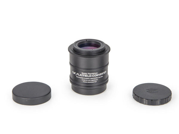 Fluorit Flatfield Converter (FFC) - Barlow. Der FFC ermöglicht mit den geeigneten Adapterringen extreme Verlängerungsfaktoren ohne Beeinträchtigung der Bildqualität auf der Achse oder im Feld. Wo fotografische Konverter oder Barlow Linsen nur einen begrenzten Verlängerungsfaktor bieten, je nach optischer Konstruktion 2fach, 3fach oder 5fach, ermöglicht der FFC einen wesentlich weiteren Bereich bei voller Schärfeleistung, nämlich 3fach bis 8fach. Machen Sie zum Beispiel aus Ihrem 2" 30mm Weitwinkelokular mit dem angenehmen Einblick ein 4mm Planetenokular ohne Einbussen im Gesichtsfeld oder im Einblickverhalten. Der FFC bietet fernrohrseitig ein T2 Innengewinde und kameraseitig ein T2 Aussengewinde. Diese fotografisch sehr gebräuchlichen Gewinde machen aus dem FFC einen flexiblen Konverter, der an alle Tele Objektive mit T2 Anschluss passt.