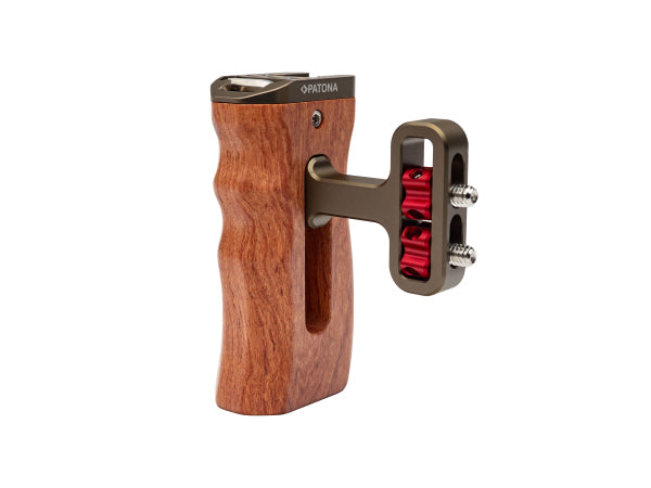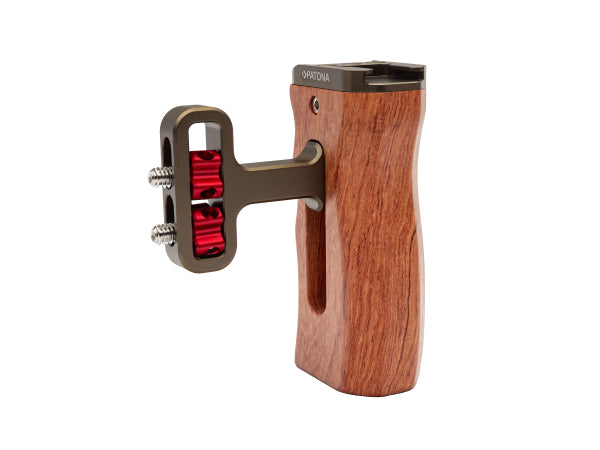 "PATONA Universal-Handgriff für Kamerakäfige" Eigenschaften: - Aluminiumlegierung, - Griff aus Birnbaum Holz, - höhenverstellbar, Unser PATONA Universal-Handgriff wird aus einer leichten robusten und anodisierten Aluminiumlegierung gefertigt und besitzt eine Ummantelung aus Birnbaum Holz, welches durch die spezielle Form gut in der Hand liegt. Der PATONA Universal-Handgriff Handgriff besitzt eine Kaltschuhhalterung, an der sich Zubehör, mit Schnellmontageplatte befestigen lässt. Der PATONA Universal-Handgriff wird mit 2 1/4-20 Zoll Schrauben an einem Kamerakäfig befestigt und ermöglicht Ihnen, durch die höhenverstellbare Halterung, ein bequemes und weniger ermüdendes Handling Ihrer Kamera. Technische Details: Material: Aluminiumlegierung und Birnbaum-Holz, Montagehalterung: 2x 1/4 Zoll Schraube und Kaltschuhhalterung, Gewicht: 169,75g, Maße: 102 x 54 x 85 mm