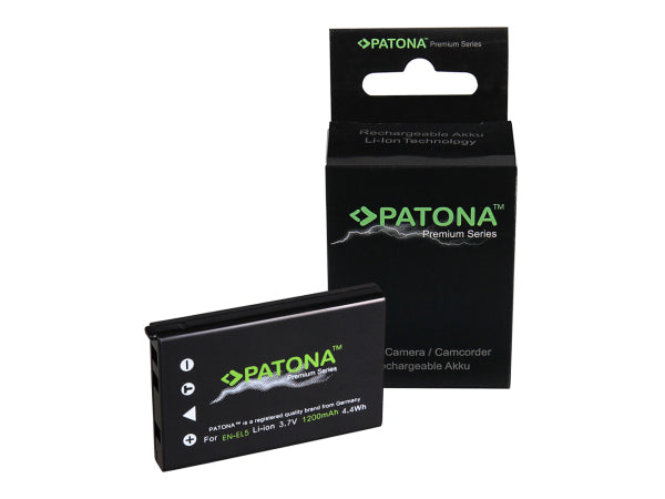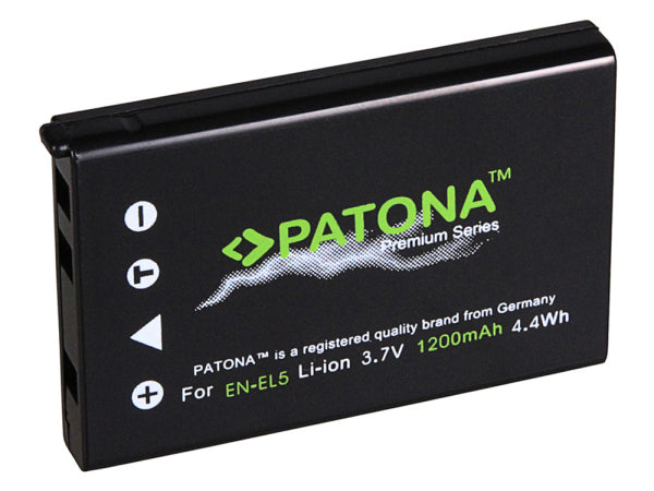 Technische Daten; Kapazität: 1200mah / 4.4Wh / 3.7V; Type: Li-Ion; Marke: PATONA; Passend für folgende Kameratypen: Nikon CoolPix 3700, 4200, 5200, 5900, 7900, P500, P510, P520 Ersetzt folgende Originalakkus: Nikon EN-EL5, ENEL5 Dieser hochwertige Akku für Nikon ENEL5 ist aus der Premium Serie der beliebten deutschen Marke PATONA. Er wurde entwickelt um den Bedürfnissen anspruchsvoller Kunden gerecht zu werden. So richtet sich die neu geschaffene PATONA Premium Serie u.a. an das Profifotografensegment und Fotofachgeschäfte. Dank der besonders langen Akkulaufzeit ist dieser Premiumakku auch für jede weitere Art des professionellen Einsatz gedacht. Es ist selbstverständlich, dass die Marke PATONA unter höchsten Qualitätsstandards produziert wird. Um jedoch einen weiteren Schritt Richtung Qualitätsführerschaft und Erhöhung der Kundenzufriedenheit zu machen, wurde das Qualitätsbewusstsein im Hause PATONA erneut geschärft und die neue langlebige PATONA Premium Akku Serie auf den Markt gebracht.
