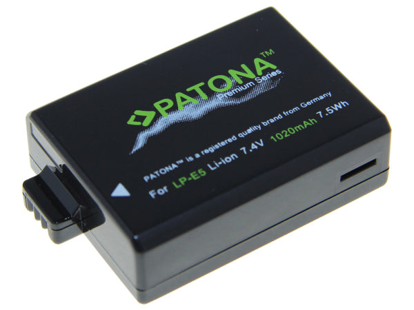 Technische Daten; Kapazität: 1020mAh / 7.4V / 7,5Wh; Type: Li-Ion; Marke: PATONA; Passend für folgende Kameratypen; EOS 1000D, EOS 450D, EOS 500D Ersetzt folgende Originalakkus; Canon LP-E5; Canon LPE5; ieser hochwertige Akku für Canon LP-E5 ist aus der Premium Serie der beliebten deutschen Marke PATONA. Er wurde entwickelt um den Bedürfnissen anspruchsvoller Kunden gerecht zu werden. So richtet sich die neu geschaffene PATONA Premium Serie u.a. an Profifotografensegment und Fotofachgeschäfte. Dank der besonders langen Akkulaufzeit ist dieser Premiumakku auch für jede weitere Art des professionellen Einsatz gedacht. Es ist selbstverständlich, dass die Marke PATONA unter höchsten Qualitätsstandards produziert wird. Um jedoch einen weiteren Schritt Richtung Qualitätsführerschaft und Erhöhung der Kundenzufriedenheit zu machen, wurde das Qualitätsbewusstsein im Hause PATONA erneut geschärft und die neue langlebige PATONA Premium Akku Serie auf den Markt gebracht.