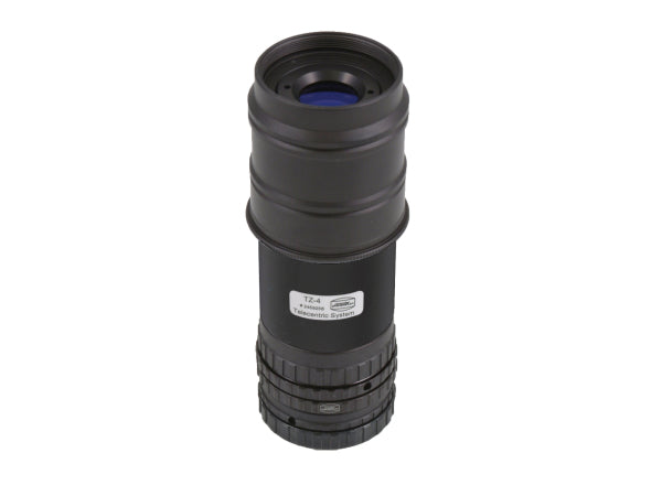 Telezentrik mit 2" Außendurchmesser und beiderseits mit T2-Gewinde ; Aplanatisch, mit 4-facher Brennweitenverlängerung und frei von Bildfeldwölbung - liefert f/30 an Teleskopen mit f/7,5 ; Speziell gerechnet und hergestellt für die H-alpha Wellenlänge, mit höchstem Strehlwert (Definitionshelligkeit bei 656,3 nm)