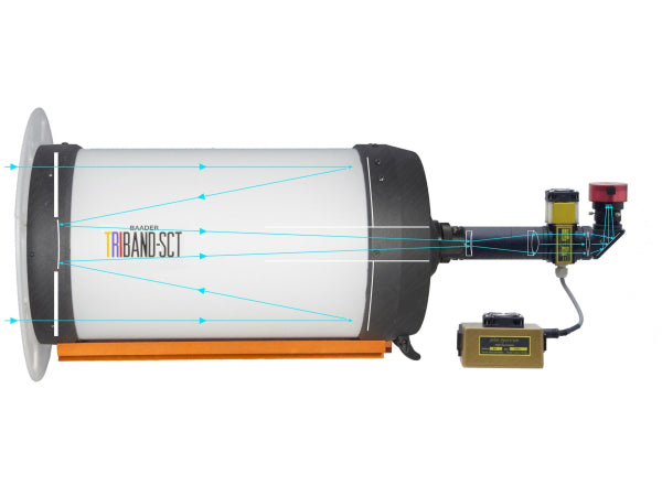 Triband-SCT's sind in den Größen 8", 9¼" und 11" erhältlich. Die Triband-beschichtete Schmidtplatte ersetzt einen zusätzlicher ERF-Energieschutzfilter und ermöglicht so die hochaufgelöste Beobachtung der Sonne Die spezielle Triband-ERF Schmidtplatte des Triband-SCT weist folgende Transmissionsbereiche auf: 380 bis 400 nm, 480 bis 515nm sowie 630 bis 680 nm. Die Transmissionsfenster sind ausgelegt für Kalzium-K, Kontinuum (inkl H-beta und O III), H-alpha und S II. Für die Beobachtung der Sonne in Weißlicht, H-alpha oder CaK oder für die Schmalband-Deep-Sky-Beobachtung sind noch weitere Filter nötig.