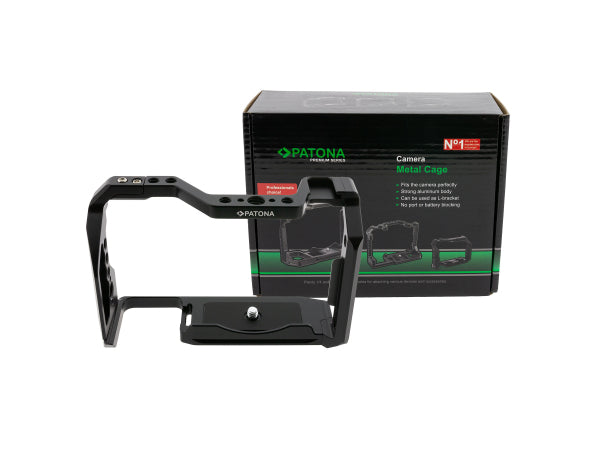 geeignet für: Sony A6700 Unser PATONA Premium Kamera-Käfig für Sony A6700 wurde speziell dafür entworfen, um Kamerazubehör daran zu befestigen und Ihre Kamera vor Schäden zu schützen. Der Käfig besteht aus hochwertiger Aluminiumlegierung, welches eine lange Nutzung garantiert. Die Kamera wird im Käfig über eine 1/4"-20 Schraube verriegelt. Durch die Arca Swiss kompatiblen Aussparungen am Handgriff kann die Kamera ohne Montage einer Wechselplatte auf einem Stativ (1/4? Anschlussgewinde) montiert werden. Der PATONA Premium Kamera-Käfig ermöglicht ohne Einschränkungen den Zugang zu den Schnittstellen, Einstellrädern, Tasten oder dem Batteriefach. Die 1/4 Zoll Gewindebohrungen und 3/8 Zoll Aufnahmebohrungen oben, an den Seiten und an der Unterseite des Käfigs ermöglichen die Befestigung von Zubehör. Die Blitzschuh-Halterung ermöglicht die Nutzung von oberen und seitlichen Handgriffen, Mikrofonen, LED- Leuchten, Monitoren und Monitorhalterungen, usw. Technische Daten: Material: hochwertige Aluminiumlegierung Bohrungen: 1/4 Zoll Gewindebohrungen und 3/8 Zoll Aufnahmebohrungen Halterungen: Blitzschuh-Halterung Gewicht: 142,66g Maße: 141 x 93 x 46 mm