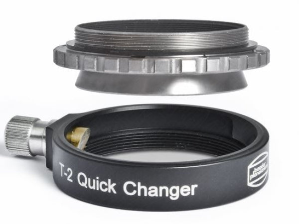 - Das T-2 TQC / TCR Schwerlast Schnellwechselsystem ermöglicht blitzschnellen Wechsel zwischen z. B. Mark V Binokular und der ClickLock Okularklemme, effektive Bauhöhe nur 15mm. - Schnellwechsel- und Drehvorrichtung mit extremer Tragfähigkeit. - Bajonettring aus Hochleistungs-Stahl, Wechsler aus Duraluminium. - Der T-Quick Changer mit Zeiss Druckstück hat ein eingebautes T-2 Innengewinde (M42x0,75) TCR = T-2 Change Ring Der Schnellwechselring aus gehärtetem Werkzeugstahl hat auf der einen Seite ein T-2-Außengewinde und auf der anderen ein Zeiss-Mikrobajonett (Ringschwalbe). Er ist auch einzeln mit der Bestellnummer 2456320 erhältlich wenn Sie zwischen mehreren Geräten wechseln wollen. Seine optische Baulänge beträgt 4 mm. TQC = T-2 Quick Changer Der TQC (T-Quick Changer) hat ein eingebautes T-2 Innengewinde (M42x0,75), und im Gegensatz zu der leichten M4 Klemmschraube des Wechslers #6 ein hochwertiges Zeiss Druckstück, sodass auch sehr schweres Zubehör noch sicherer und stabiler getragen wird. Er hält en Schnellwechselring mit Mikrobajonett (Ringschwalbe) fest an seiner Position.
