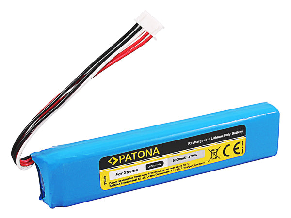 Hochleistungs-Akku mit neuen hochwertigen Markenzellen wie unter anderem von Panasonic, LG, Sanyo,... 100 % kompatibel mit den Original JBL Akkus durch maßgefertigte Passform inklusive Überladungs- und Kurzschlussschutz. Technische Daten: Spannung: 7,4 Volt Kapazität: 5000mA / 37,0Wh Typ: Li-Polymer Der Akku ist passend für folgende Modelle: JBL Xtreme Original-Bezeichnung der JBL Akkus Dieser Akku ersetzt folgende Akkutypen: JBL GSP0931134
