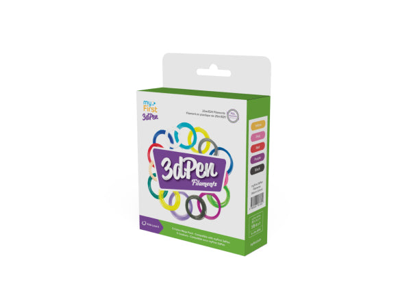 Ein grossartiger Filamente Nachfüllpack für myFirst 3D Pen Make. Jedes Filament kommt mit einer Länge von 5 Metern, das speziell für myFirst 3D Pen Make formatiert ist. Set enthält 5 warme Farben: gelb, rosa, rot, violett, schwarz