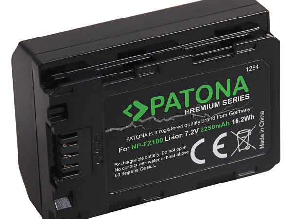 Lieferumfang:1x Patona Ladegerät Dual USB Sony NP-FZ100 + 2 Patona Premium Akku Sony NP-FZ100 ( 2400 mAh) Akku: 2400mAh / 17.3Wh / Spannung: 7.2V, Lithium-Ionen Akku mit den einschlägigen Schutzmechanismen ausgestattet.Dank der besonders langen Akkulaufzeit ist dieser Premiumakku auch für jede weitere Art des professionellen Einsatz gedacht. Ladegerät: Input: DC 5V / 2,1A Output: DC 8.4V / 700mA 1 / 500mAx2 Abmessung: 5,2 x 4,0 x 1,8 cm Anschlüsse: USB-C (input), 2 Ladefächer (output) Passend für folgende Kameratypen:Sony NP-FZ100, FZ100 Es ist möglich 2 Akkus zeitgleich zu laden. Das Ladegerät kann über jeden handelsüblichen USB Port mit dem mitgelieferten USB-A auf USB-C Kabel mit Strom versorgt werden.