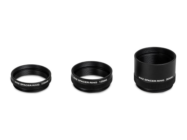 Kit mit 3 Ringen 7.5, 12 und 30mm. Passt den Hintergrundfokus zwischen Kamera und Teleskop an, um die besten Ergebnisse bei der Bildgebung zu erzielen Das Kit enthält 3 Distanzringe unterschiedlicher Länge (7,5 mm, 12 mm, 30 mm). Gewinde an Ihrem T-Ring und T-Adapter mit Standard-T-Gewinde und Innengewinde