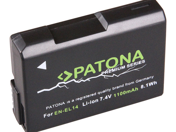 Technische Daten; Nikon EN-EL14-decoded Kapazität: 1100mah / 8.1Wh / 7.4V; Type: Li-Ion; Marke: PATONA; Passend für folgende Kameratypen; Nikon Coolpix P7000; P7100; P7700; P7800; Nikon Spiegelreflex; D3100; D3200; D5100; D5200; D5300; D3400, D5600 Ersetzt folgende Originalakkus: Nikon EN-EL14, Nikon ENEL14 Dieser hochwertige Akku für Nikon ENEL14 ist aus der Premium Serie der beliebten deutschen Marke PATONA. Er wurde entwickelt um den Bedürfnissen anspruchsvoller Kunden gerecht zu werden. So richtet sich die neu geschaffene PATONA Premium Serie u.a. an das Profifotografensegment und Fotofachgeschäfte. Dank der besonders langen Akkulaufzeit ist dieser Premiumakku auch für jede weitere Art des professionellen Einsatz gedacht.