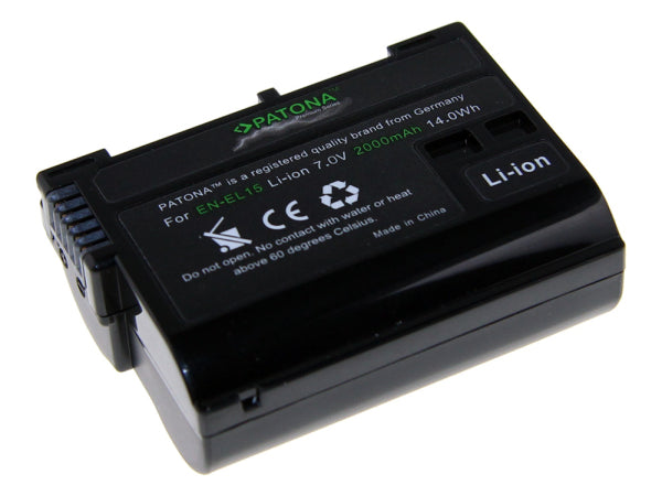 Technische Daten: Kapazität: 2400mAh / 7V / 17,3Wh Type: Li-Ion Marke: PATONA Passend für folgende Kameratypen: Nikon V1, Nikon D7000, Nikon D7100, Nikon D800,Nikon D810, Nikon D800E, Nikon 1 V1, Nikon D600, Nikon D610, Nikon Z6, Z7 (Akku kann nicht direkt in der Kamera geladen werden) Ersetzt folgende Originalakkus: Nikon EN-EL15, EN-EL15B, ENEL15 Dieser hochwertige Akku für Nikon EN-EL15 ist aus der Premium Serie der beliebten deutschen Marke PATONA. Er wurde entwickelt um den Bedürfnissen anspruchsvoller Kunden gerecht zu werden. So richtet sich die neu geschaffene PATONA Premium Serie u.a. an Profifotografensegment und Fotofachgeschäfte. Dank der besonders langen Akkulaufzeit ist dieser Premiumakku auch für jede weitere Art des professionellen Einsatz gedacht.