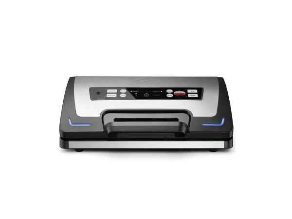 - Grosse blaue LEDs zeigen an, wenn der Deckel korrekt verriegelt und das Gerät zum Vakuumieren bereit ist