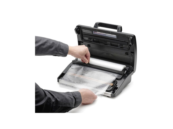 Mit dem Solis Vakuumiergerät Typ 5708 bleiben Lebensmittel spürbar länger frisch – ganz gleich, ob trocken, feucht oder flüssig. Die spezielle Pulse-Vakuumfunktion sorgt für besonders schonendes Versiegeln empfindlicher Produkte. Die Handhabung ist dank des grossen Verriegelungshebels und der übersichtlichen LED-Anzeigen kinderleicht. Eine integrierte Schneidevorrichtung ermöglicht es, die Folie stets in passender Länge zuzuschneiden. Zum Start sind bereits zwei Rollen Folie, zehn Beutel sowie ein Vakuumierschlauch enthalten. Ideal auch zum Marinieren. Komfortabel, vielseitig, typisch Solis.