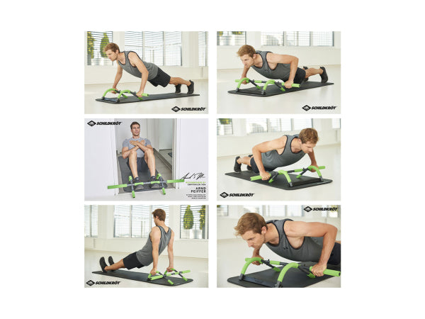 Das Schildkröt Multifunktions-Türreck bringt dein Krafttraining nach Hause – einfach, effektiv und vielseitig. Du kannst damit Klimmzüge, Liegestütze oder Trizepsübungen durchführen und dabei gezielt Schultern, Brust und Arme stärken. Die stabile Konstruktion aus pulverbeschichtetem Stahl hält bis zu 100 kg aus und passt an Türrahmen bis 92 cm Breite und 12–24 cm Tiefe. Weiche PU-Schaumstoffgriffe sorgen für Komfort bei jeder Übung. Das Türreck ist dreifach verstellbar und schnell montiert – ohne Bohren. Ob am Türrahmen oder am Boden: Du trainierst, wie es für dich am besten passt. Ideal für dein flexibles Home-Workout.