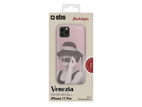 Heben Sie Ihr iPhone 11 Pro mit einem Cover voller Stil und Charme hervor. Das Venezia-Cover aus der Nostalgia-Kollektion hat ein eindrucksvolles und faszinierendes Thema: Eine berühmte Oscar-Preisträgerin ist zu einer Ikone der Eleganz geworden.