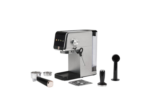 Starte perfekt in den Tag mit der Berlinger Haus Espresso Kaffeemaschine aus der Black Rose Collection! Mit 1350 W Leistung und einer 20-Bar-ULKA-Hochdruckpumpe zauberst du aromatischen Espresso wie ein Barista. Dank des schnellen Heizsystems ist dein Kaffee im Handumdrehen fertig. Der 1,2-Liter-Wassertank sorgt für mehrere Tassen Genuss, während du mit dem professionellen Milchaufschäumer cremigen Milchschaum zauberst. Die digitale LED-Anzeige mit Touchscreen macht die Bedienung kinderleicht. Tassenvorwärmer und Reinigungsfunktion bieten zusätzlichen Komfort. Das elegante Schwarz-Roségold-Design bringt Luxus in deine Küche – geniesse Kaffee in Perfektion!, , , Produktinformation, , 1 und 2 Tassenfilter, 2 in 1 Plastiklöffel mit Stampfer, Hochwertiger Edelstahlstempel, Digitale LED-Anzeige + Touchscreen, ULKA-Hochdruckpumpensystem (20 Bar) - bereitet den Kaffee immer mit frischem Wasser zu, Schnelles Heizsystem, Mit professionellem Milchaufschäumer für den perfekten Milchschaum, Tassenvorwärmer aus Edelstahl, Reinigungs- und Entkalkungsfunktion