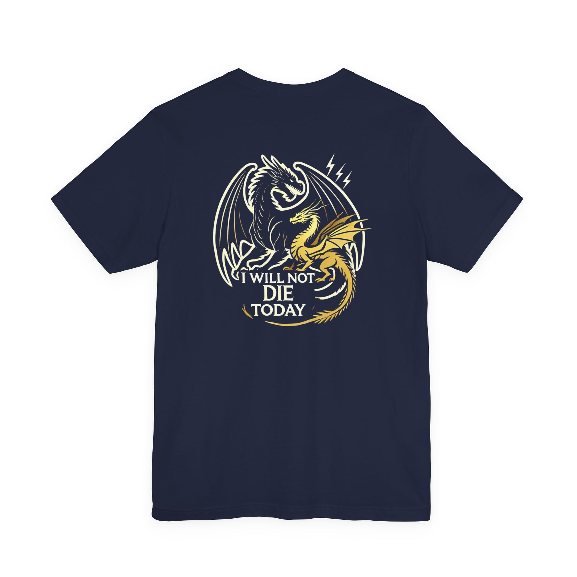 Dragon Graphic Tee - I Will Not Die Today, Fantasy Shirt, Gamer Apparel, Gift for Nerds, Unisex Casual Wear